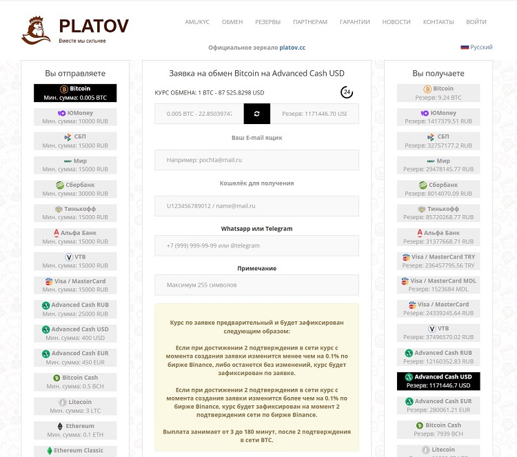 Описание обменного пункта: Мы предлагаем вам честные, понятные обмены и долгосрочное взаимовыгодное сотрудничество! Мы переняли большой опыт у наших партнеров, постоянно проводим анализ рынка , находимся в тренде современного развития рынка криптовалюты, готовы всегда услышать своих клиентов — Нам важно ваше мнение.