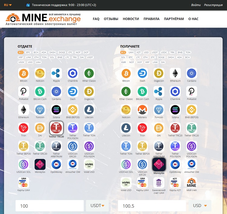 Описание обменного пункта: Mine.Exchange – это сервис для обмена электронных валют. Мы открылись в 2016 году под названием «Шахта.com», и с этого времени упорно работаем каждый день чтобы предоставлять лучший сервис на рынке. В 2019 году был произведен ребрендинг, и мы поменяли название на Mine.exchange. Сейчас оба адреса сайта активны.
